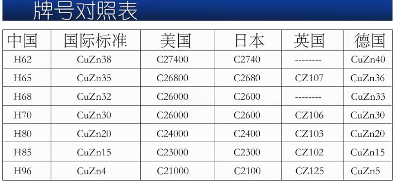 常用銅牌號